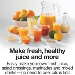 - MAKE FRESH, HEALTHY JUICE: Make fresh juice with oranges, lemons, limes, grapefruits and more. This versatile electric citrus juicer squeezer is perfect for salad dressings and marinades and it’s ideal anytime you need an orange juicer or lemon juicer.